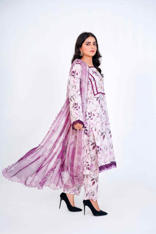 3pc stitch suit purple chiffon dupata