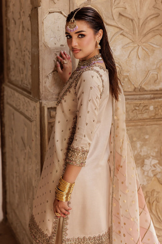 3-PC Embroidered Organza Shirt with Raw-Silk Sharara and Organza Dupatta CMA-4-03