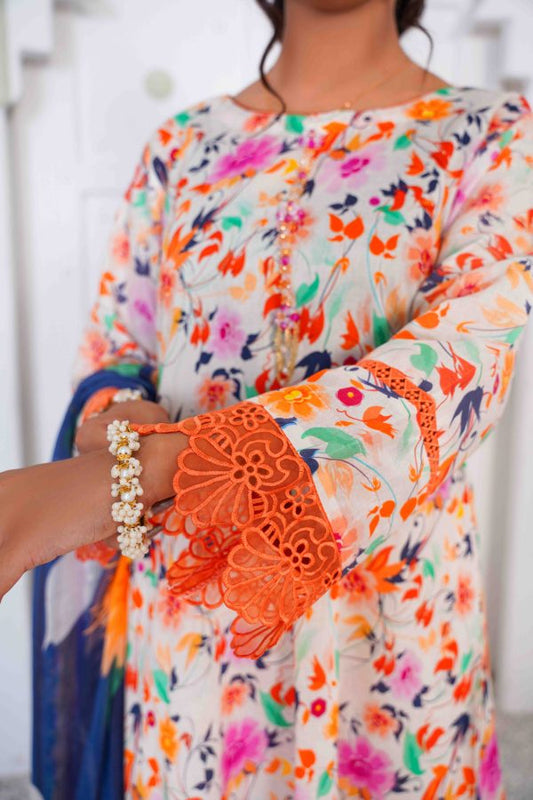 3pc stitch suit with pure chiffon dupata multi color